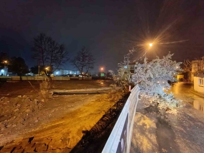 İnegöl'de fırtına paniği: İnşaat alanından yola devrilen ağaç faciayı önledi