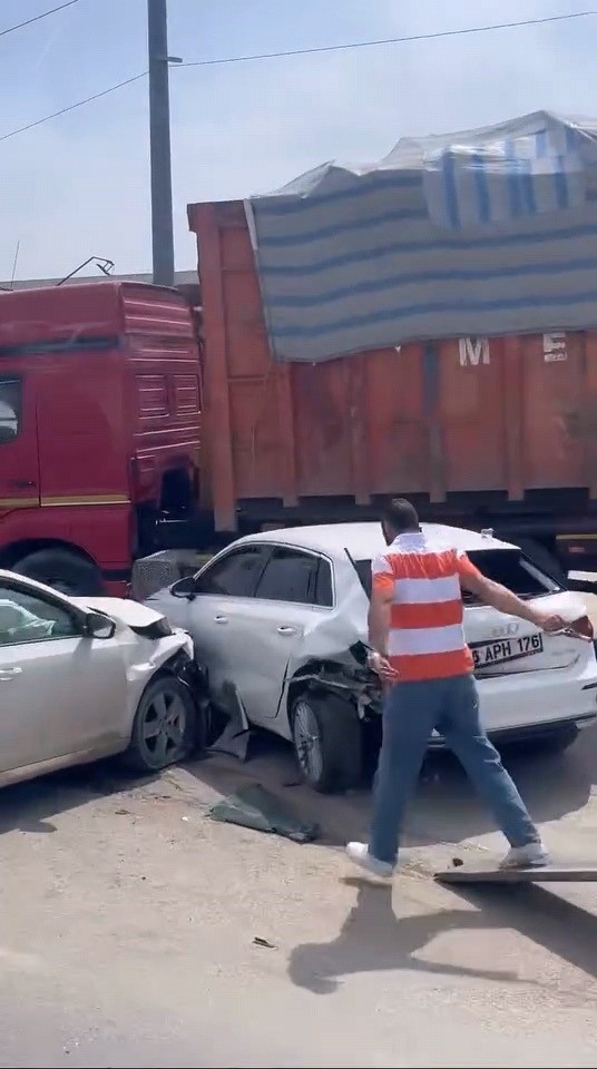 İnegöl'de kan donduran kaza: 3 otomobil ve kamyon birbirine girdi, 5 kişi yaralandı!