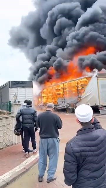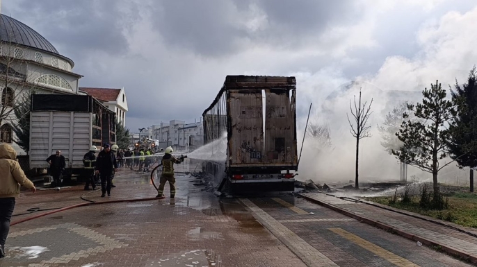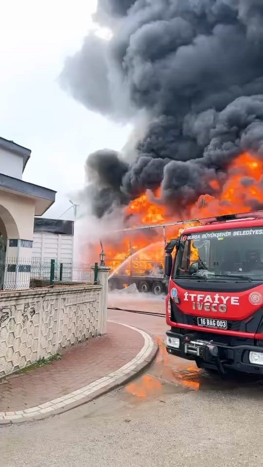 Bursa'nın İnegöl ilçesinde yürekleri ağza getiren bir olay yaşandı. Mesudiye Mahallesi Meydan Sokak üzerinde park halindeki iki tır dorsesi, bilinmeyen bir nedenle çıkan yangında alev topuna döndü.