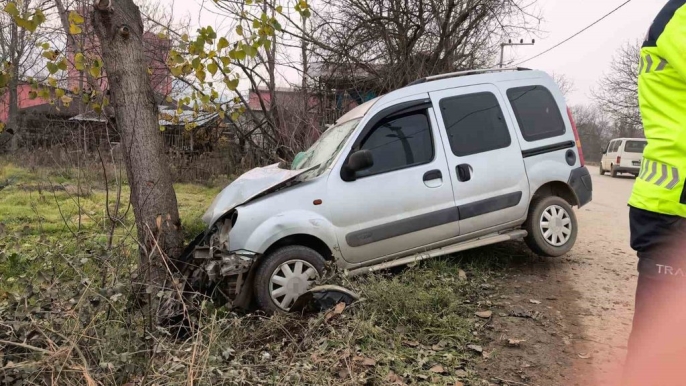 Bursa'nın İnegöl ilçesinde meydana gelen trafik kazasında, hafif ticari bir araç ağaca çarparak sürücü anne ve küçük kızının yaralanmasına neden oldu.