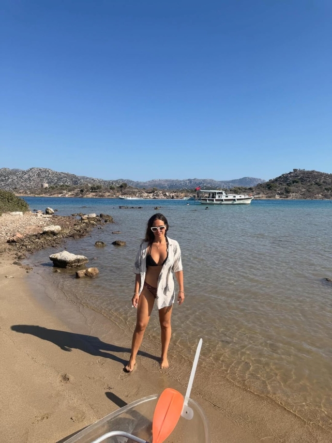 İpek Karapınar Bozburun'da tatil keyfi: Şeffaf konaya bindi