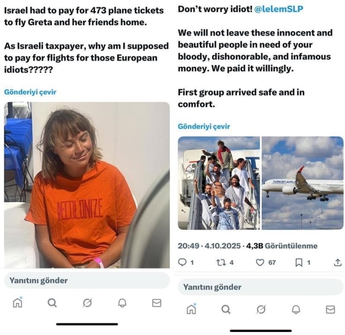 Sosyal medyadaki İsrail destekçisi trollerin, Sumud Filosu aktivistlerinin uçak biletleri üzerinden başlattığı tartışmaya ABD'li kullanıcılar sert tepki gösterdi.