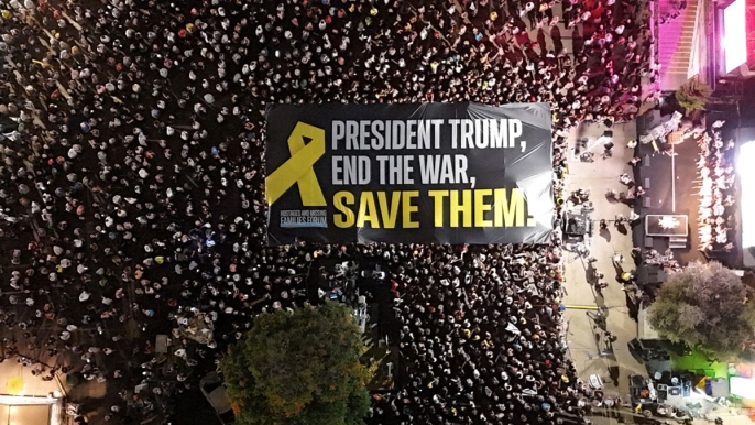 Tel Aviv'de toplanan göstericiler, “Başkan Trump, savaşı bitir ve rehinleri kurtar” yazılı dev bir pankart taşıdı. Rehinelerin fotoğraflarının yer aldığı dövizler de protestocular tarafından kullanıldı. Gösterilerde sadece İsrailli rehineler değil, Gazzelilerin durumu da dile getirildi, İsrail ordusunun Gazze'de etnik temizlik yaptığını iddia edenler oldu.