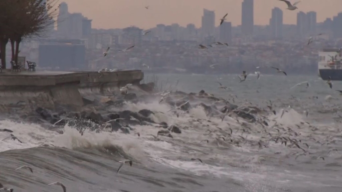 İstanbul'da lodos kıyıları vurdu: Fatih ve Zeytinburnu'nda dev dalgalar oluştu
