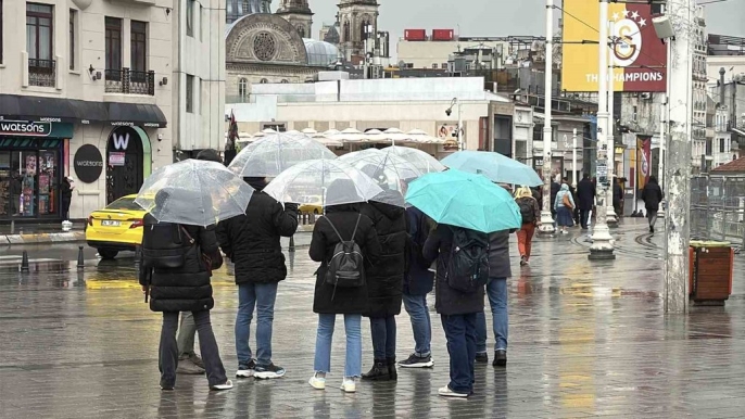 İstanbul'da soğuk hava ve yağmur, etkisini devam ettiriyor. Özellikle Taksim Meydanı ve İstiklal Caddesi'nde, belirli aralıklarla yağan yağmur nedeniyle vatandaşların şemsiyeleriyle tedbir aldığı gözlemleniyor.