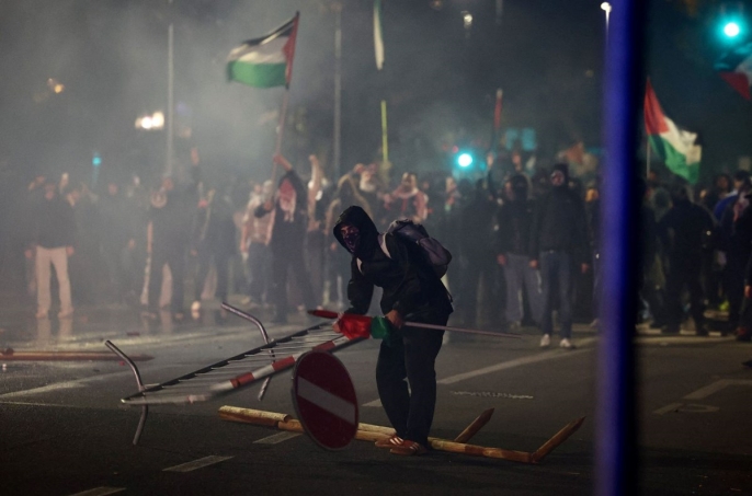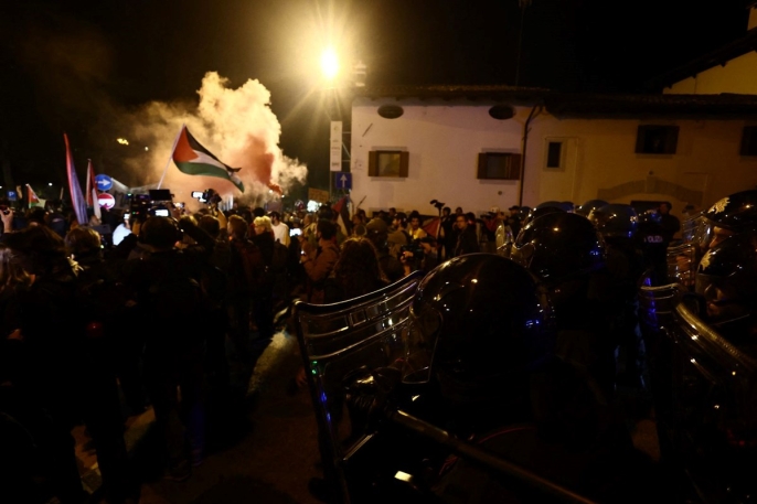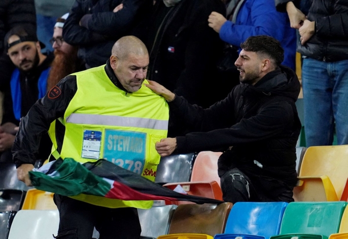 Filistin destekçisi gruplar, İtalya'nın Udine şehrinde Dünya Kupası elemeleri için bulunan İsrail takımını protesto etmek amacıyla sokaklara döküldü. Polis, göstericilerin yürüyüşünü stadyum yakınına taşımak istemesi üzerine müdahalede bulundu. Yüzlerce protestocu, polis bariyerlerini aşarak ilerlemeye çalıştı. Polis, tazyikli su ve göz yaşartıcı gaz kullanarak müdahale ederken, protestocuların polise havai fişeklerle karşılık vermesiyle çatışmalar yaşandı.