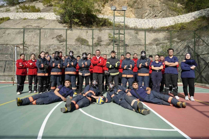 Gümüşhane Üniversitesi'nde itfaiye öğrencileri, geleneksel eğitim yöntemlerinin ötesinde bir yaklaşımla mesleğe hazırlanıyor. 20 kilogramlık koruyucu kıyafetler giyerek voleybol oynuyorlar, bu sayede hem fiziksel dayanıklılıklarını artırıyor hem de yangın koşullarını simüle ediyorlar.
