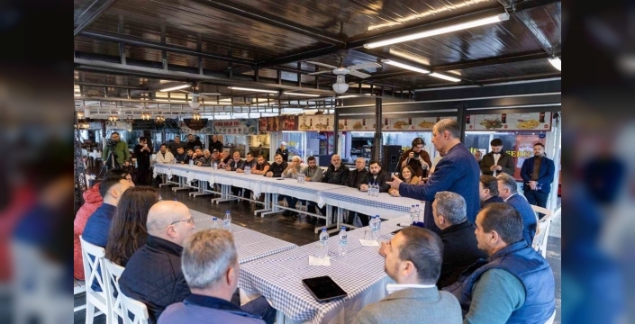 Başkan Tugay, Seferihisar Sığacık Su Ürünleri Kooperatifi üyeleriyle bir araya gelerek mezata katıldı ve balıkçı esnafının sorunlarını dinledi. Tugay, "Görevler gelip geçici ama dayanışma kalıcıdır. Şehrimizin üreten insanlarıyla bir bütün olmalıyız. Sizlerin emeği, bu kentin bereketidir," diyerek üreticilere destek mesajı verdi. İzmir'in ancak çalışarak ve üreterek daha iyi noktalara geleceğini vurgulayan Tugay, belediyenin her zaman üreticilerin yanında olacağını belirtti.