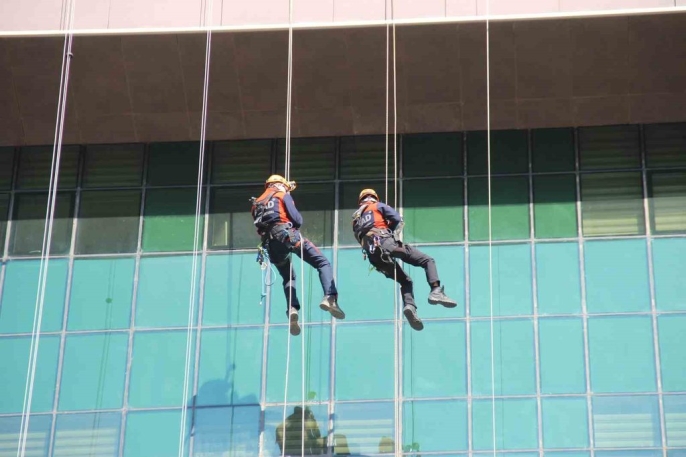 İzmir Bölge Adliye Mahkemesi hizmet binasında, çeşitli güvenlik kurumlarının katılımıyla kontrollü bomba imha tatbikatı yapıldı.
