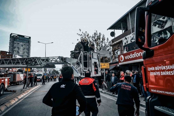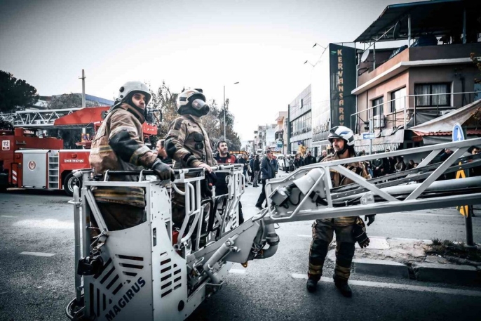 Yıldırım Beyazıt Mahallesi Fatih Caddesi üzerindeki iş hanının 2. katında, saat 15.30 sıralarında henüz bilinmeyen bir nedenle yangın başladı. İhbar üzerine, İzmir Büyükşehir Belediyesi İtfaiye Dairesi Başkanlığı'ndan 12 araç ve personel olay yerine sevk edildi. Ekipler, binada yaptıkları incelemede çeşitli katlarda 12 vatandaşın mahsur kaldığını tespit etti.