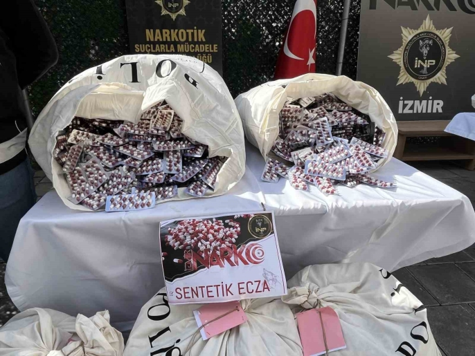 Narkotik ekiplerinin Karabağlar'da yürüttüğü operasyonlarda toplamda 881 bin 800 sentetik ecza ve 22 kilogram esrar-skank maddesi ele geçirildi. Yapılan açıklamada, ele geçirilen sentetik ecza miktarının, İzmir'de bugüne kadar gerçekleştirilen en büyük yakalama olduğu belirtildi. İzmir Cumhuriyet Başsavcılığı koordinesinde yürütülen ilk operasyonda, Karabağlar ilçesindeki bir adreste yüklü miktarda uyuşturucu madde bulundurulduğu ve bu maddelerin sokak satıcılarına dağıtılacağı bilgisi üzerine harekete geçildi. Tespit edilen araç ve adreste yapılan aramalarda 881 bin 800 adet sentetik ecza bulundu.
