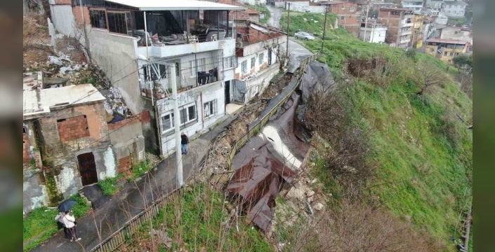 Son günlerde etkili olan şiddetli yağışlar, İzmir’de bazı bölgelerde hayatı olumsuz etkilemeye devam ediyor. Konak ilçesine bağlı Ferahlı Mahallesi'nde, 3505 Sokak’ta toprağın yumuşaması sonucu yolun bir kısmında çökme meydana geldi. Bu dar sokak, özellikle yayalar ve motosiklet sürücüleri için geçiş güzergahı olduğundan, hasar çevredeki binaları da tehdit etmeye başladı. Mahalle sakinleri, çökmenin aniden değil, gün içerisinde yavaş yavaş gerçekleştiğini ve bu durumun kaygı verici olduğunu dile getiriyor.