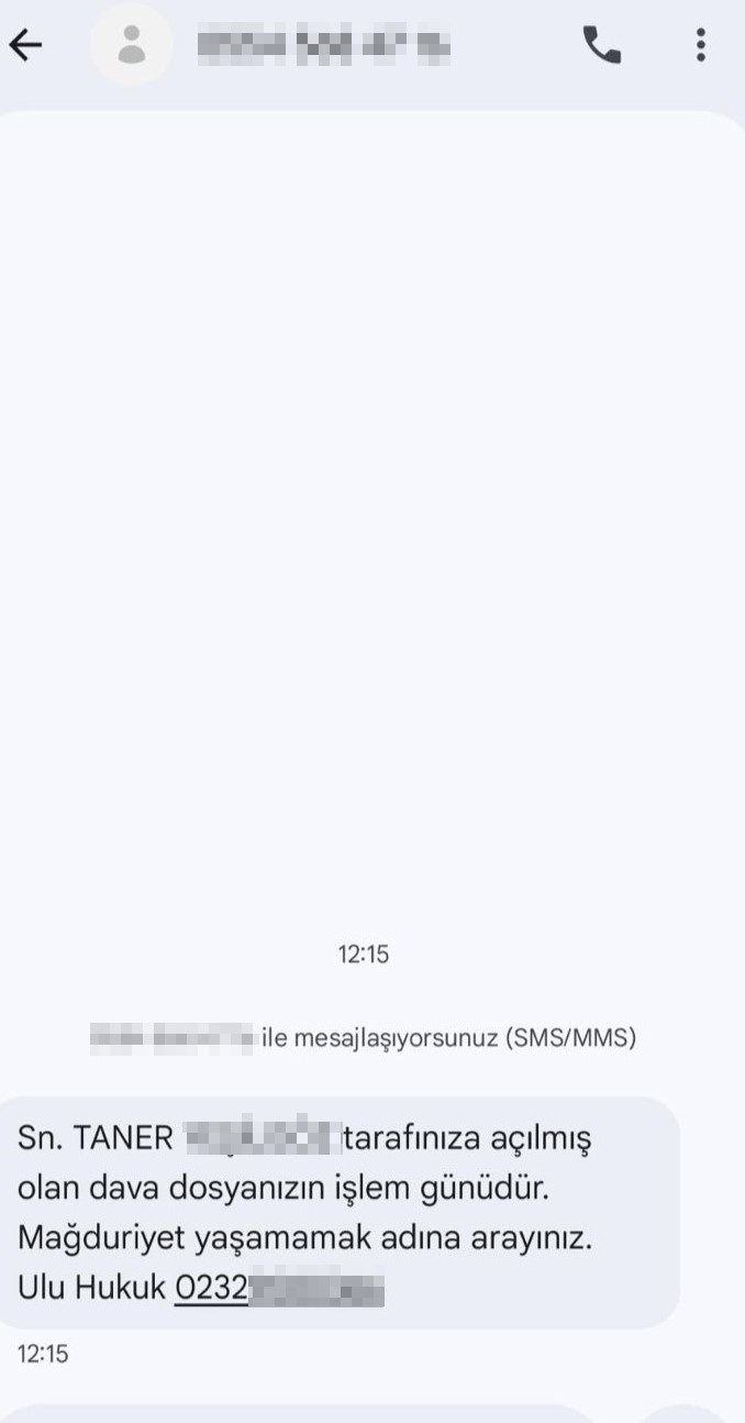İzmir'de bir hukuk bürosunun adını kullanarak dolandırıcılık yapan bir şebeke, vatandaşlara sahte dava mesajları göndermeye başladı.