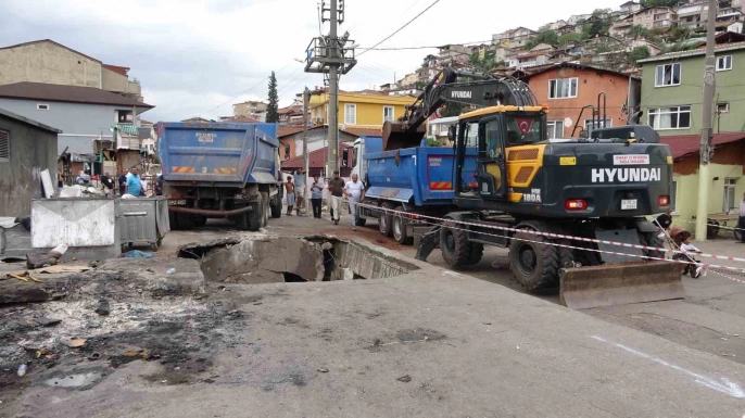 Saat 08.00 sıralarında gerçekleşen olayda, sürücüsünün kimliği henüz tespit edilemeyen kamyon, sokakta ilerlerken aniden oluşan çukura düştü. Olay yerine gelen polis, sağlık, belediye ve zabıta ekipleri sokağı emniyet şeridiyle kapatarak güvenlik önlemi aldı. Şans eseri olay sırasında sokakta kimsenin bulunmaması muhtemel bir faciayı önledi.
