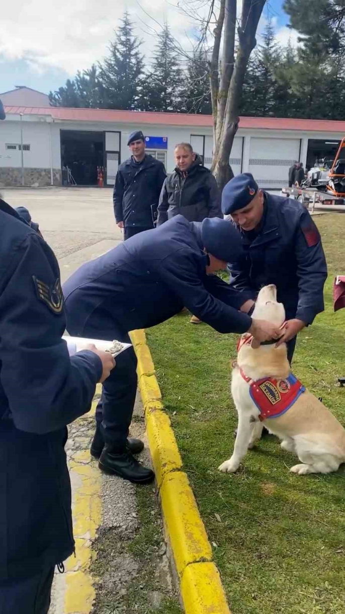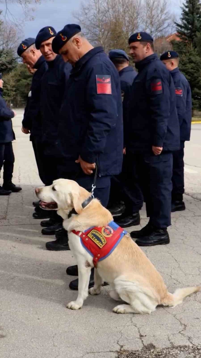 Bolu İl Jandarma Komutanlığı'nda 10 yıldır başarıyla görev yapan iz takip köpeği "Medyum", düzenlenen özel bir törenle emekliliğe uğurlandı.