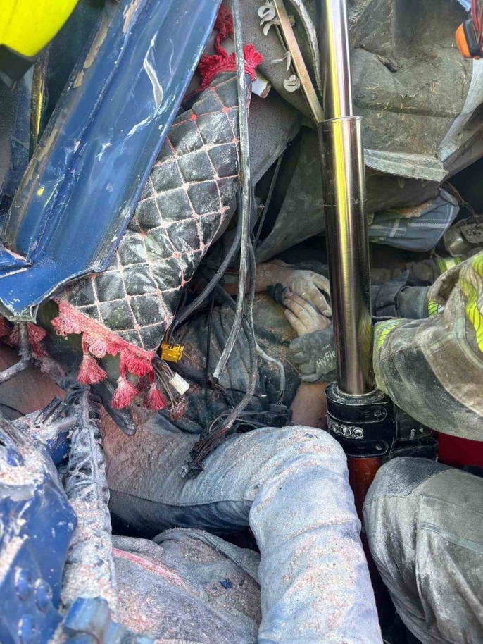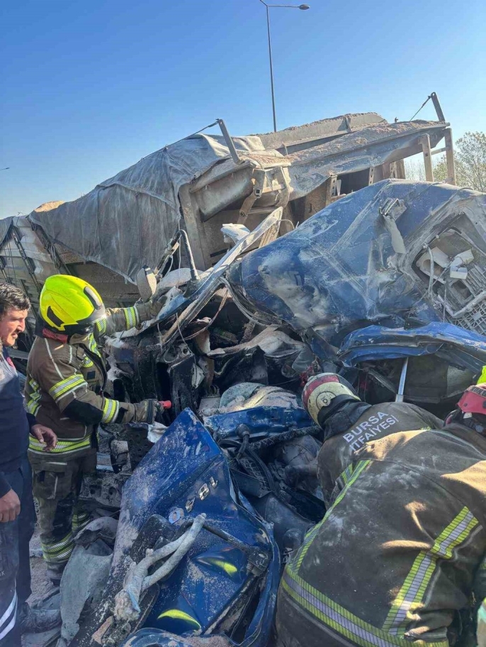 İstanbul İzmir Otoyolu Bursa çevre yolunda bir dinlenme tesisinin bariyerine çarpan kamyonun sürücüsü, Büyükşehir Belediyesi itfaiye ekiplerinin çabasıyla kurtarıldı.