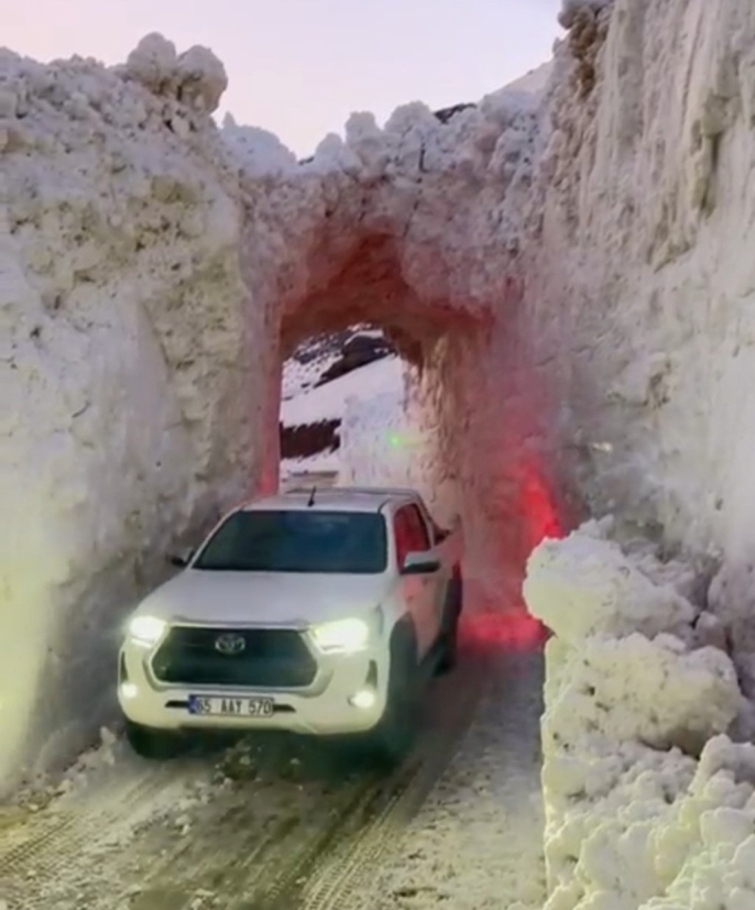 Van'ın Bahçesaray ilçesinde, çığ nedeniyle ulaşıma kapanan Altındere Mahallesi Dikmetaş mezrasına, ekiplerin açtığı bir kar tüneliyle ulaşım sağlanıyor. Yoğun kar yağışı ve tipinin etkili olduğu bölgede, vatandaşlar zorlu şartlarla mücadele ederken, bu tünel adeta bir yaşam koridoru haline geldi.