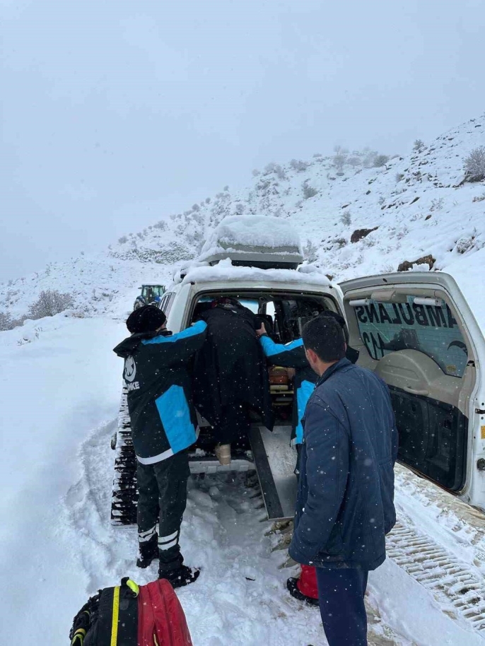 Kar ve buzlu yollara inat: Paletli ambulansla hayat kurtarıldı