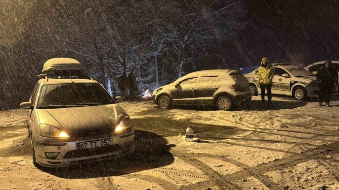 Karabük’ün yüksek kesimlerinde etkili olan kar yağışı, vatandaşların bölgeye akın etmesine sebep oldu. Gecenin ilerleyen saatlerinde de devam eden kar, Safranbolu-Bartın kara yolunu beyaza bürüdü.