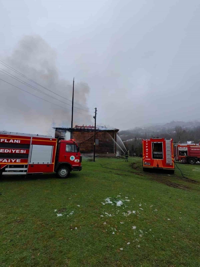 Karabük'ün Eflani ilçesine bağlı Ovaşeyhler köyünde çıkan yangında, yaklaşık 450 yıllık bir cami maalesef kullanılamaz hale geldi.