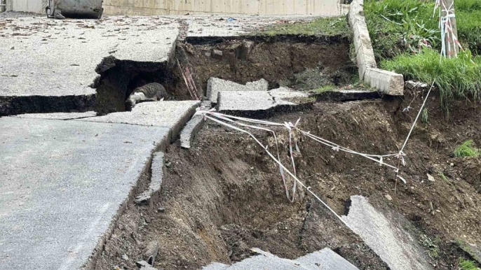 Karabük'ün Kayabaşı Mahallesi Sezin Sokak'ta beklenmedik bir gelişme yaşandı. İnşaatı devam eden 12 derslikli Mehmet Akif İlkokulu'nun hemen yanı başındaki yol, henüz belirlenemeyen bir sebeple çöktü. Bu ilginç olayın görüntüleri, bir dron aracılığıyla havadan kaydedildi.