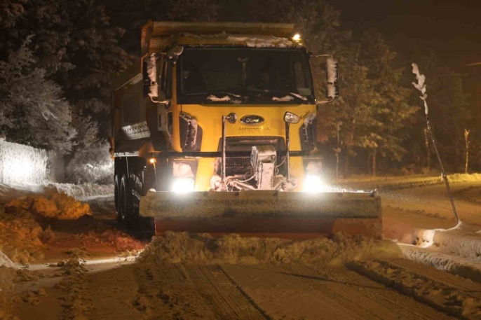 Yaklaşık 500 personel, ulaşımda aksamaların yaşanmaması için kar küreme ve tuzlama çalışmalarını aralıksız sürdürdü. Ekipler, hummalı çalışmalarla ana yolları ve kritik noktaları açık tutmaya çalışıyor.