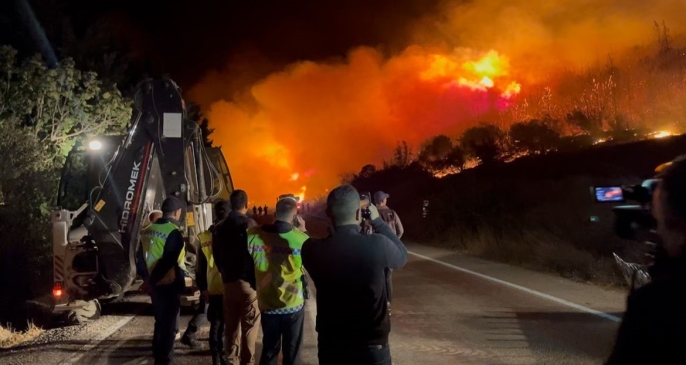 Çok sayıda kara ekibinin yangına müdahale ettiği belirtilirken, bölgedeki şiddetli rüzgarın söndürme çalışmalarını olumsuz etkilediği bildirildi. Geceyi adeta gündüze çeviren alevlere karşı ekiplerin yoğun bir mücadele verdiği öğrenildi. Havanın kararması sebebiyle hava araçlarının müdahalesinin mümkün olmadığı, yangının kontrol altına alınması için tüm imkanlarla çalışıldığı ifade edildi.