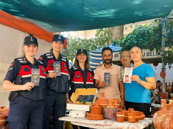 Aydın'ın Karacasu ilçesinde düzenlenen 36. Afrodisias Kültür, Sanat ve Tanıtım Festivali'nde jandarma ekipleri, vatandaşları bilgilendirdi.