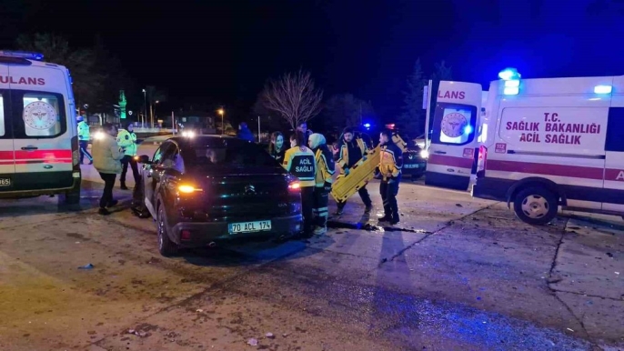 Karaman'da polis ekiplerinin 'dur' ihtarına uymayan bir otomobil, kavşakta başka bir araçla çarpıştı. Bu korkunç kazada, şüphelilerin çarptığı otomobildeki 3 kişi yaralandı.