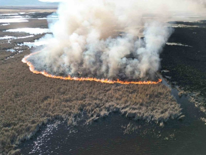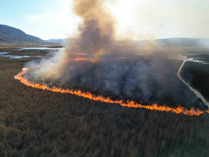 Karamık Gölü'nde kan donduran manzara: Sazlıklar alevlere teslim oldu