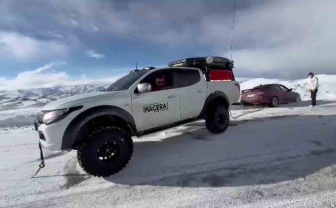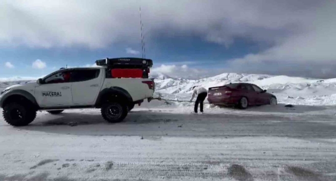Karda mahsur kalan sürücüye off-road ekibi yetişti
