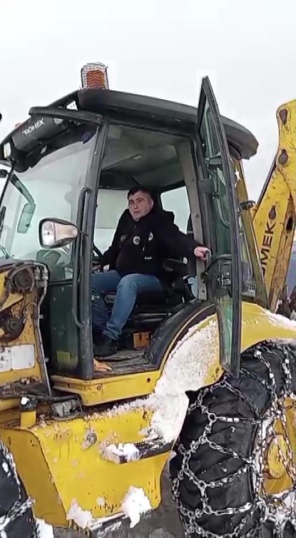 Karla kaplanan mezraya ilaç ulaştırmak için kepçe kullanıldı