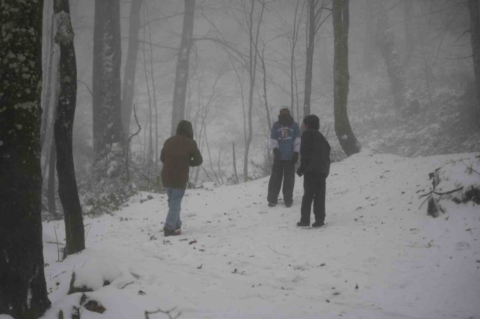 Kartepe zirvesi beyaza büründü: Doğaseverler akın etti