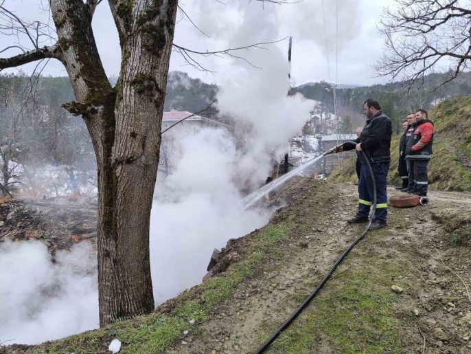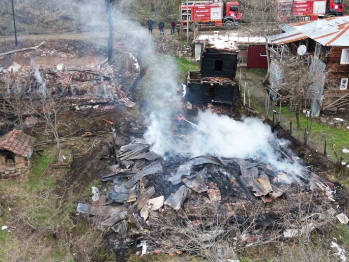Kastamonu'nun Bozkurt ilçesine bağlı Keşlik köyünde, sobadan çıktığı tahmin edilen bir yangın, iki evi ve bir ambarı kullanılamaz hale getirdi.