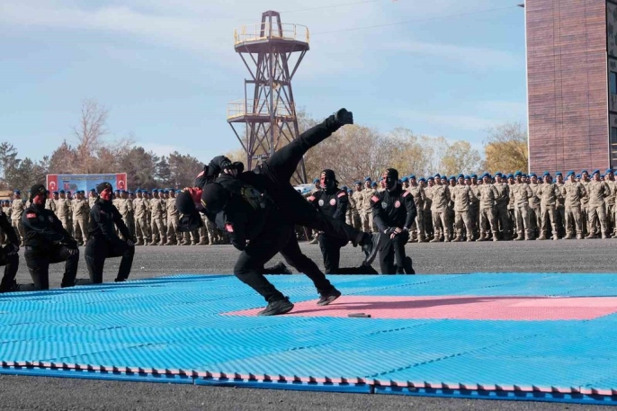 Jandarma Genel Komutan Yardımcısı Korgeneral Aykut Tanrıverdi, mezunlara seslenerek, "Halen huzurunuzda adeta çelikten bir kale gibi duran bu evlatlarımız her türlü suç örgütü ve şer odağı ile mücadele eden jandarma teşkilatı ve sahil güvenlik teşkilatının bir mensubu olacaklardır. Kahraman uzman erbaşlarımız yurdumuzun her köşesinde omuz omuza büyük bir heyecanla kamu düzenini sağlamak maksadıyla kanı ve canıyla mücadele edecektir" dedi. Ailelere de seslenen Tanrıverdi, yetiştirdikleri evlatların milli, ahlaki ve insani değerlere bağlı, hukuk ve insan haklarına saygılı uzman erbaşlar olarak yetiştiğine inandığını vurguladı. Kastamonu Jandarma Komando Eğitim Merkez Komutanı Albay Gülhan Kılıç ise, "Kahraman komandolarımız, 26 haftalık uzman erbaş komando temel kursunu başarıyla tamamladınız. Yüce ulusumuzun engin sevgi ve güvenine mazhar olmuş, kahraman jandarma teşkilatında ve sahil güvenlik komutanlığında görev yapmaya hak kazandınız. Vatan bizler için hiçbir şeyle değişilmeyecek kadar kutsal bir varlıktır. Tarihten bugüne mukaddes vatan toprakları söz konusu olduğunda canını vermekten çekinmeyen Jandarma Genel Komutanlığı ve sahil Güvenlik Komutanlığı personelinin asla mukayese edilemeyecek yücelikteki vatan sevgisinin erişilmez. Kahraman ruhunun sarsılmaz mücadele azminin ve asil karakterinin bundan sonra sizlerle daha da yükseleceğine bize bırakılan bu kutsal emanetlere sahip çıkmak için canınızı seve seve feda edeceğinize inancım tamdır" ifadelerini kullandı. Kılıç, ailelere de seslenerek, gözlerinden sakınarak gönderdikleri evlatlarının gurur kaynağı olduğunu belirtti. Tören, dereceye giren kursiyerlere belgelerinin verilmesi, komando andının okunması ve nefes kesen gösterilerle sona erdi. Uzman erbaşların köpek unsuru, tüfekli hareketler, yakın dövüş ve kuleden iniş gösterileri büyük beğeni toplarken, helikopterden sarkan Türk bayrağı ve liderlerin posterlerinin yer aldığı bayraklar, katılımcılardan alkış aldı. Yeminlerini eden komandolar, aileleriyle kucaklaşarak özlem giderdi.