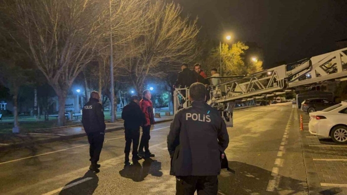 Çıkış yolu bulamayan ikili, üçüncü kattaki daireden çarşafları birbirine bağlayarak binanın altındaki marketin çıkıntısına inmeye çalıştı. Ancak burada mahsur kaldılar. İhbar üzerine olay yerine polis, sağlık ve itfaiye ekipleri sevk edildi.