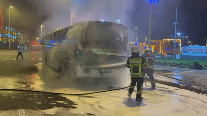 Kayseri'nin Melikgazi ilçesinde, bir halk otobüsünde çıkan yangın, polis ekiplerinin hızlı müdahalesiyle büyümeden söndürüldü.