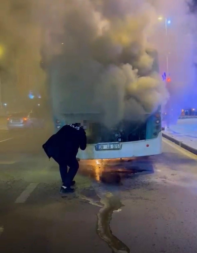 38 AB 076 plakalı özel halk otobüsü, kırmızı ışıkta beklerken motor kısmından duman çıkmaya başladı. Dumanlar kısa sürede alevlere dönüşünce, olay yerindeki polis ekipleri, yanlarındaki yangın tüpleriyle alevlere müdahale etti. Ekiplerin hızlı müdahalesi, yangının büyümesini ve olası bir faciayı önledi.