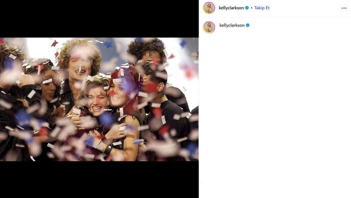 'Because of You', 'Since U Been Gone' ve 'Stronger' gibi hit parçalarıyla tanınan ABD'li şarkıcı, paylaşımında şu ifadeleri kullandı: '23 yıl önce beni arayıp oy veren herkese teşekkür ederim. American Idol'u kazanmak hayatımı değiştirdi ve yıllardır beni destekleyen herkese sonsuza dek minnettarım. Amacını ve tutkunu bulmak bir armağan, bunu yaparak geçimini sağlayabilmek de cabası.' Clarkson, o zamandan beri 10 stüdyo albümü ve 56 single yayınladı, 17 kez Grammy'ye aday gösterildi ve üç ödül kazandı.