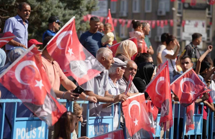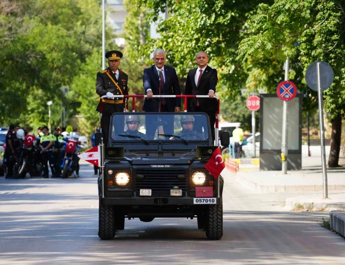 Fevzi Çakmak Caddesi'nde Vali Makas, Tuğgeneral Durmuş ve Başkan Önal, vatandaşların bayramını kutladı. Üsteğmen Metahan İlmek, günün anlam ve önemini belirten bir konuşma yaptı. Şiir okunması ve askeri birliklerin geçişiyle program sona erdi. Törene, protokol üyeleri, siyasi parti temsilcileri, gaziler ve çok sayıda vatandaş katılım gösterdi.