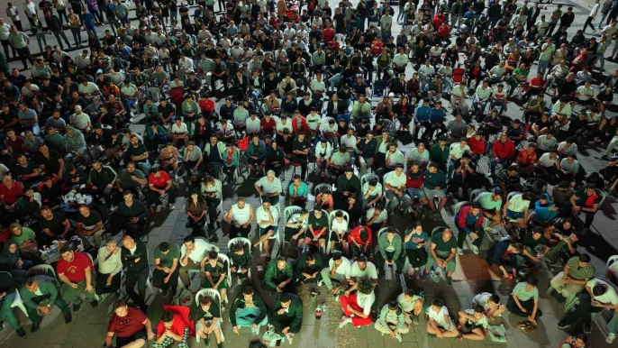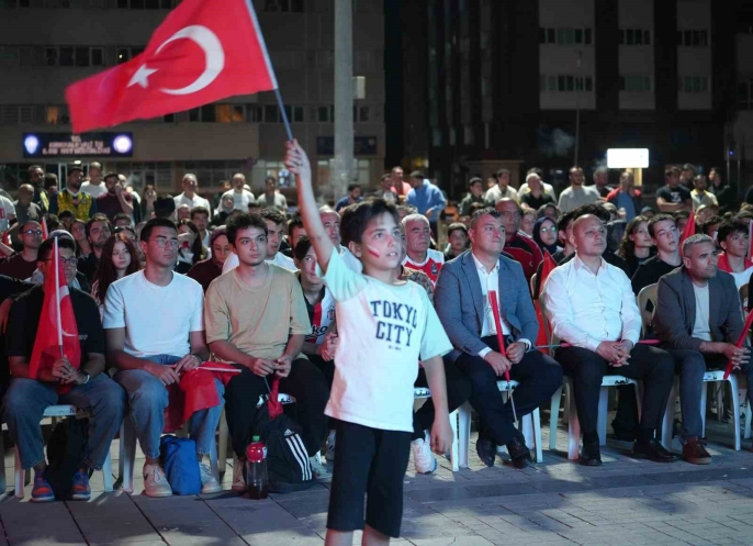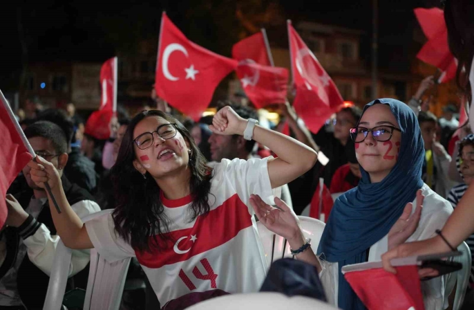 Ellerinde Türk bayraklarıyla meydanda toplanan vatandaşlar, milli takımlarına desteklerini gösterdi. Heyecanlı anlar yaşandı, destek tezahüratları yükseldi.
