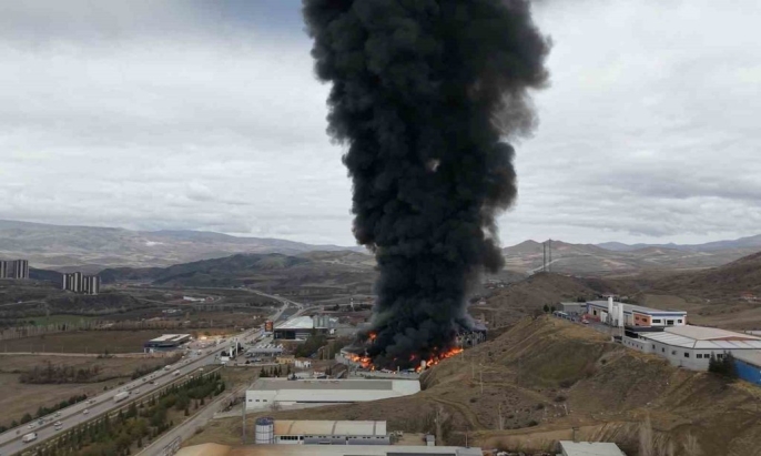 Alev alev yanan fabrika, havadan çekilen görüntülerle belgelendi. Ankara'ya yaklaşık 60 kilometre uzaklıkta bulunan tesis, yoğun duman ve alevler nedeniyle çevrede endişe yarattı. İtfaiye ekipleri, yangının kontrol altına alınması için yoğun bir çaba sarf ediyor.