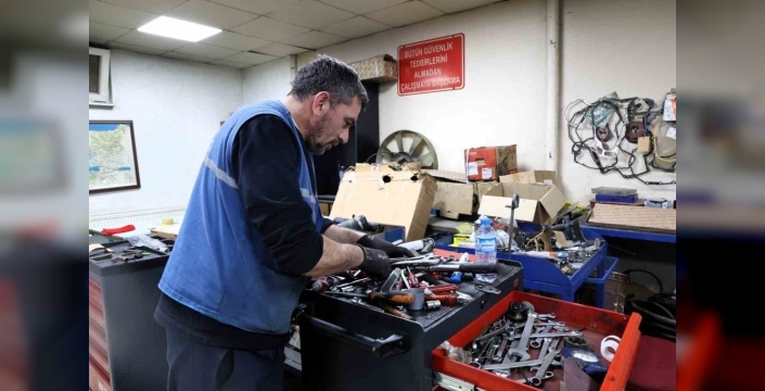 Ulaşım Dairesi Başkanlığı Makine İkmal Şube Müdürlüğü ekipleri, araç filosunun periyodik bakımlarını ve mekanik ile elektrik kaynaklı arızalarını kurum bünyesindeki atölyelerde gideriyor. Dış kaynak kullanımını azaltarak bütçeden tasarruf etmeyi hedefleyen belediye, araçların şarj ve marş dinamoları, aydınlatma sistemleri ve elektrik tesisatlarını kendi personeliyle onarıyor.