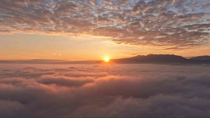 Hava sıcaklığının 5 derece ölçüldüğü kentte, sis tabakasının yüksek kesimleri beyaz bir örtü gibi kaplamasıyla görsel bir şölen yaşandı. Kentin mimarisi ve doğasıyla birleşen sis bulutları, adeta seyirlik görüntüler ortaya çıkardı.