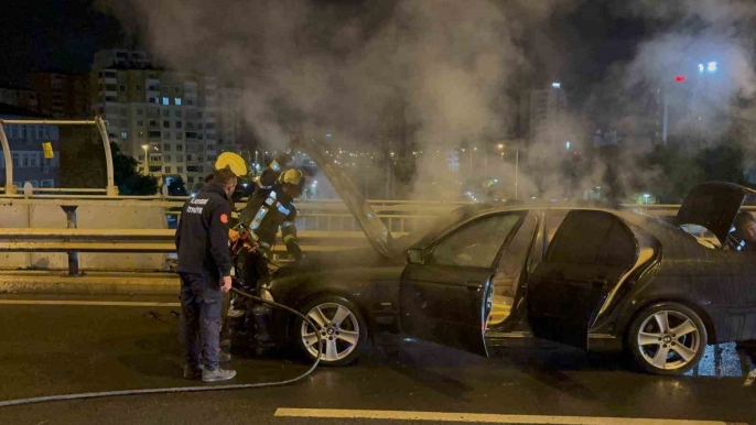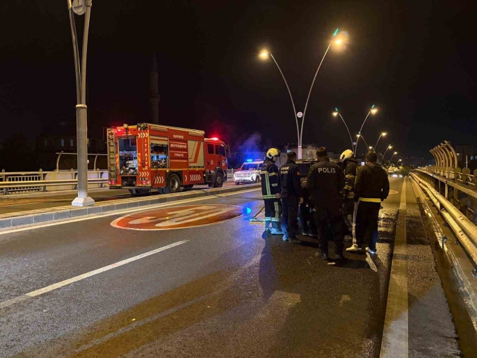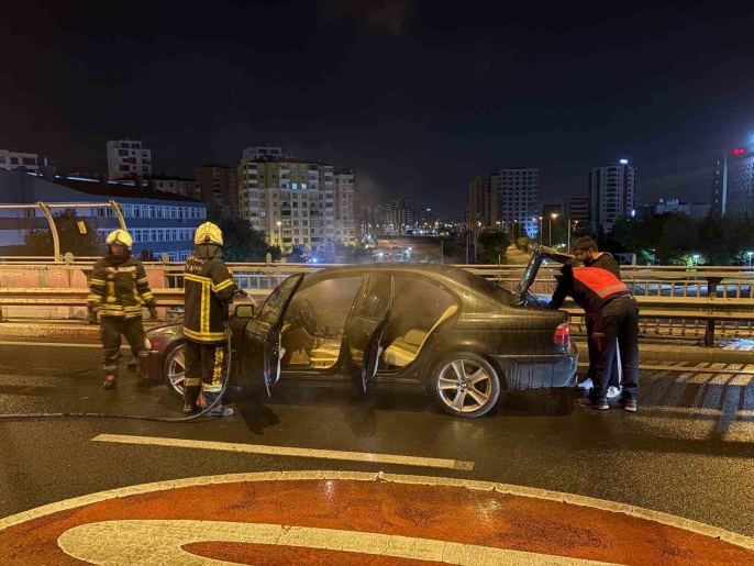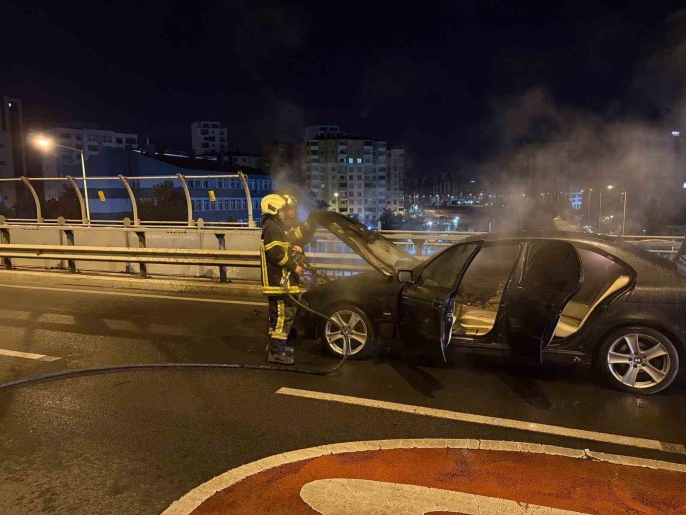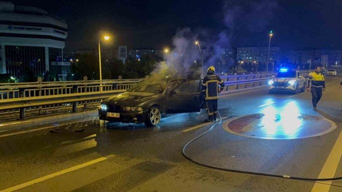 Kayseri'nin Kocasinan ilçesinde, Mevlana Mahallesi Mustafa Kemal Paşa Bulvarı üzerindeki bir üst geçitte seyreden otomobilin motor kısmında yangın çıktı.