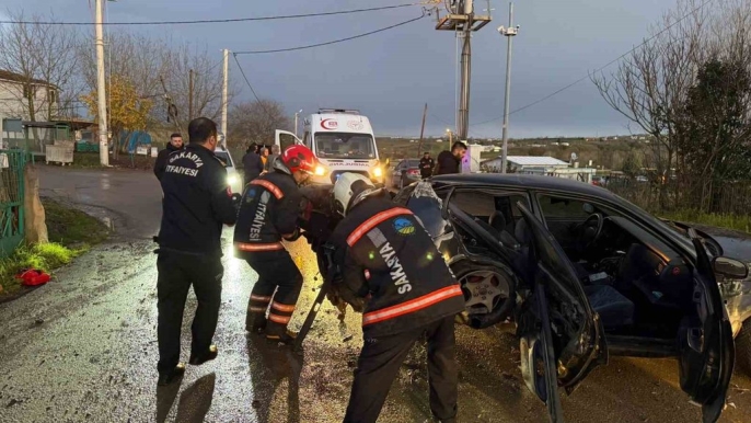 Sakarya'nın Taraklı ilçesinde, yola aniden çıkan bir köpeği ezmemek için direksiyonu kıran sürücü, kontrolünü kaybettiği aracıyla yol kenarındaki duvara çarparak durabildi.
