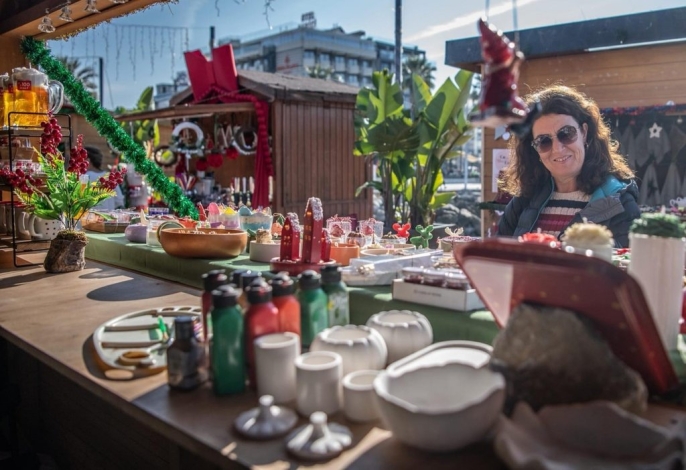 Kuşadası'nda yılbaşı pazarı rengarenk tezgahlarıyla ilgi çekiyor