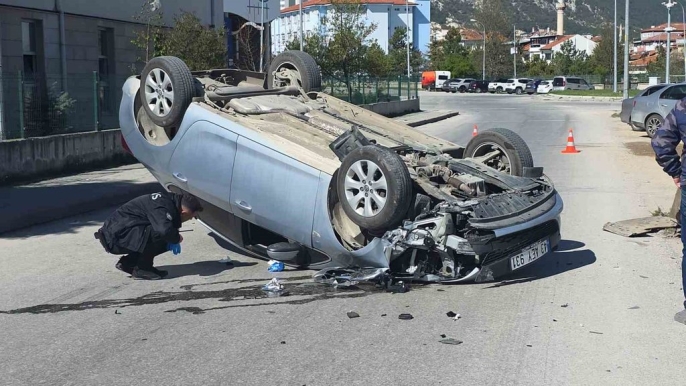 Kütahya'da yol kenarındaki aydınlatma direğine çarpan otomobil ters dönerek sürücüsünün yaralanmasına neden oldu.