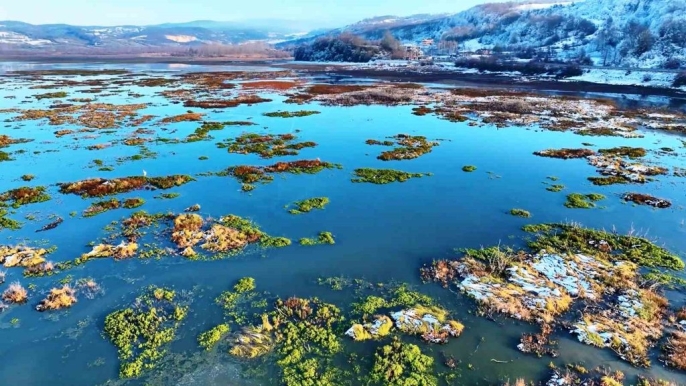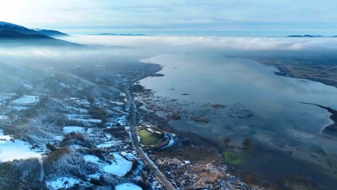 Samsun'da bulunan Ladik Gölü, son kar yağışıyla birlikte bembeyaz bir örtüyle kaplandı. Gölün güzelliği, havadan çekilen görüntülerle daha da etkileyici bir şekilde gözler önüne serildi.