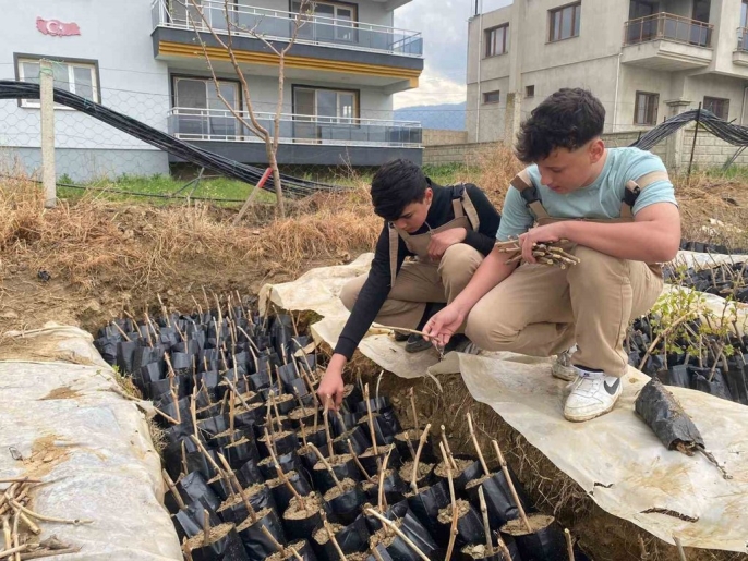 Aynı zamanda, öğrenciler yaklaşık 5 bin adet tüplü bağ fidanı üreterek hem eğitimlerini pekiştirdi hem de bölge tarımına katkıda bulundu. Üretilen fidanlar arasında Çekirdeksiz Sultani, Red Globe ve Thompson Seedless gibi yüksek ekonomik değere sahip üzüm çeşitleri de bulunuyor. Öğrenciler, ekimden bakıma, aşılama tekniklerinden çelik hazırlamaya kadar birçok süreci uygulayarak mesleki deneyim kazanıyor. Tarım Alanı Şefi Mehmet Dereli, öğrencilerin hem üretim yaptığını hem de mesleki becerilerini geliştirdiğini belirterek, "Amacımız, geleceğin bilinçli üreticilerini yetiştirmek. Öğrencilerimiz burada teorik bilgilerini sahada uygulama fırsatı buluyor" dedi. Okul yönetimi ise tarım projelerinin artarak devam edeceğini ve yapılan üretimlerin çevredeki çiftçilere örnek olduğunu vurguladı.